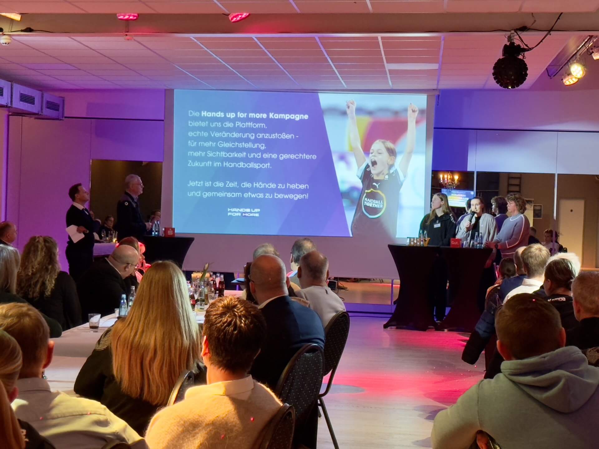Saskia Lang, ehemalige deutsche Nationalspielerin und seit 2022 beim DHB im Bereich Marketing und Kommunikation tätig, schilderte eindrucksvoll das Projekt „Hands up for more“, wie aus einer Werbe-Kampagne für die Frauen-WM 2025 eine große Bewegung für den Frauen-Handball in Deutschland wurde. Saskia Lang: „Es hat sich viel ganz viel bewegt, viel mehr als wir je erwartet haben. Und die positive Entwicklung geht weiter.“
