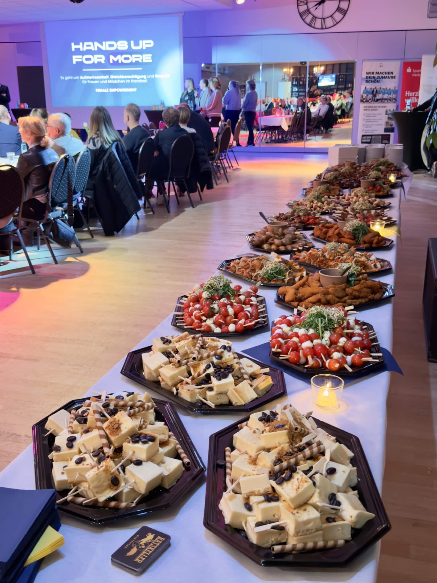 Zum Abschluss verwöhnte der Ratskeller Buxtehude Mannschaft und Sponsoren der Bundesliga in Buxtehude mit leckerem Fingerfood-Buffet vom Ratskeller. Timm Hubert: „Ein gelungener Abend und eine willkommene Gelegenheit, allen Partnern Danke zu sagen und nach vorne zu blicken.“