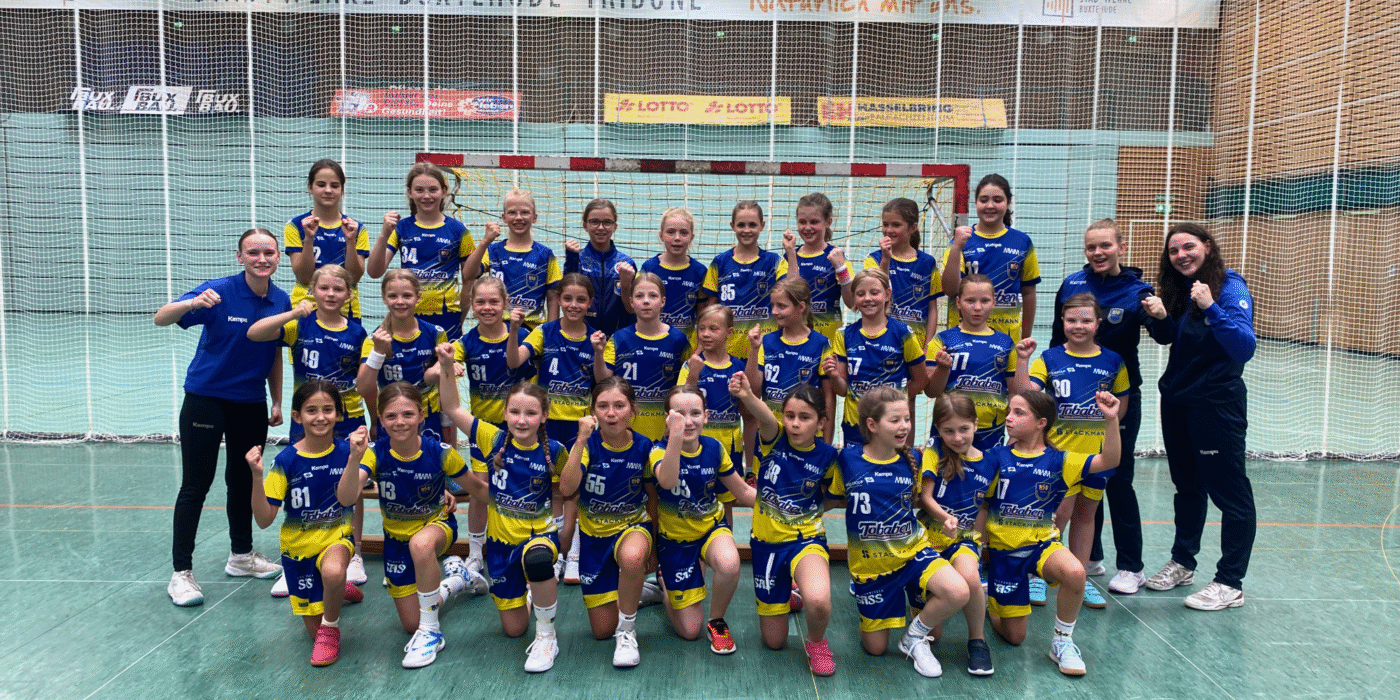 Mittlere Reihe: Annika Hinsberger (Trainerin), Amelie Heemann, Nele Thewes, Svea Thewes, Flora Beeck, Tjara Peters, Nola Vega, Sophia Vogt, Neele Bischoff, Frida Kadow, Katharina Ropers